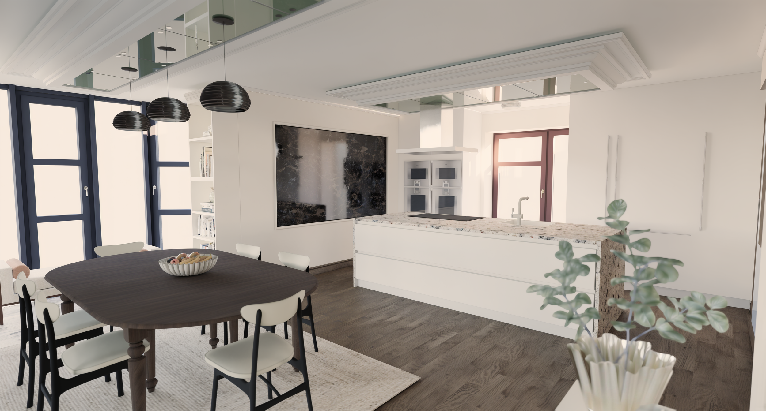 Położona na spokojnej posesji w pobliżu Jeziora Kierskiego, ta rezydencja stanowi dialog między architektonicznym dziedzictwem a współczesną finezją. Koncepcja reinterpretuję solidność tradycyjnego polskiego budownictwa przez pryzmat europejskiego nowoczesnego klasycyzmu – gdzie proporcje, światło i materioznawstwo tworzą język dyskretnego luksusu. Istota projektu tkwi w równowadze: między strukturą a miękkością, geometrią a krzywizną, dziedzictwem a nowoczesnością. Każde pomieszczenie zostało zaprojektowane jako część spójnej narracji, która naturalnie rozwija się z architektonicznego kontekstu domu. Wnętrza czerpią inspirację z eleganckiego racjonalizmu włoskiego designu, paryskiego poczucia wyrafinowania oraz powściągliwego ciepła północnej Europy. Paleta łączy wybór kamienia emperador, crema marfil, szczotkowanego brązu, drewna oraz lakierowanych paneli w stonowanych, ziemistych tonacjach. Oświetlenie pełni rolę rzeźbiarską, harmonijnie wtapiając się we wnętrze wraz z starannie wyselekcjonowanymi meblami.